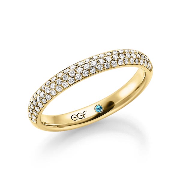 - Halb besetzt: Die Edelsteine bedecken nur die obere Hälfte des Rings, wodurch der Tragekomfort im Alltag erhöht wird.